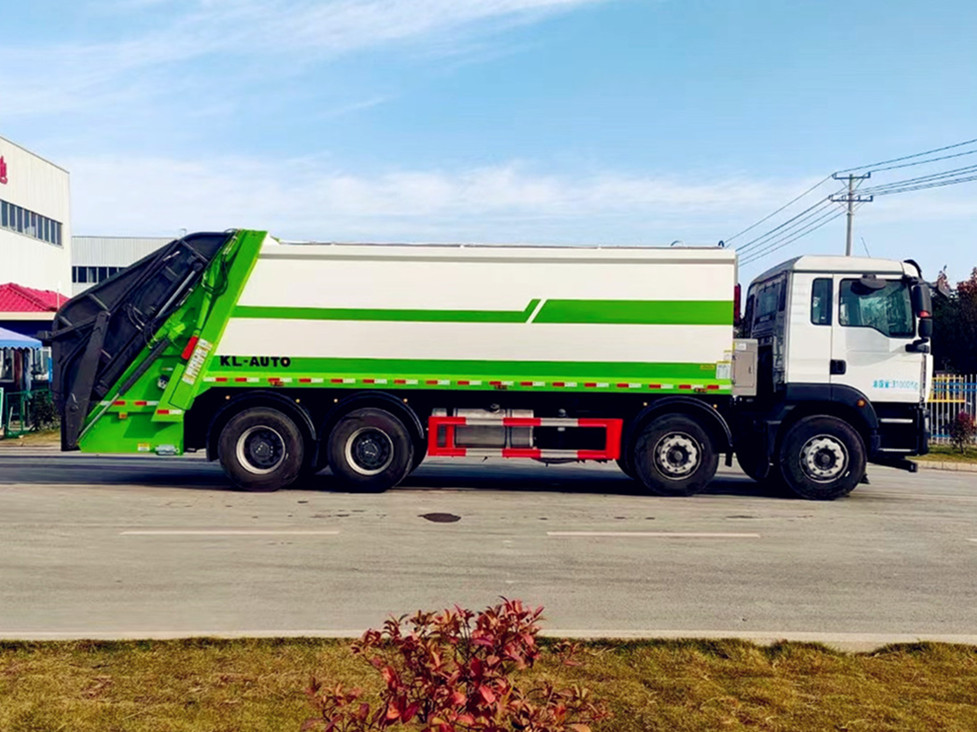 | 基本配置: | 底盤配置: 配置一:濰柴350馬力,G5-M系列駕駛室,軸距:1800+3800+1350,豪沃10檔變速箱,5.5噸前橋,11噸雙后橋,280大梁,11.00R20鋼絲胎,400L油箱。自動空調,四通道ABS,博世方向機,氣囊座椅,電動玻璃,中控鎖,搖控鑰匙,可調節多功能方向盤,電動調節帶加熱后視鏡。(換12檔變速箱,16噸輪邊減速橋加8000) 配置二:德國曼350馬力,G5H-W駕駛室;HW19710變速器+HW70法蘭式取力器;H653自調臂前軸(6噸鼓式);MCJ11沖焊自調臂雙后橋(曼11噸鼓式);雙層車架(8+4/280);ZF8198方向機;前后標準版多片簧(11/11/10);中位保險杠(金屬);帶ABS(4S/4M);標準版排氣系統;無氣候包。11.00R20;速比4.63;選裝前后螺旋簧懸置;選裝300L油箱;選裝整車前下防護;選裝中國重汽智能通A版 上裝配置:1,新款弧形箱體,增加箱體容積,整車更美觀,箱體為碳鋼制作,底箱及填充器采用加厚鋼板,耐腐蝕使用壽命長,一層油漆噴涂處理。2,裝載循環時間=25S;垃圾排出時間≤25S;填料提升角度≥95°,壓縮比例為1/3-1/2,一裝部分具備雙向壓縮和蠕動壓縮功能帶。3,新款結構加大填充器,手電一體操作模式,帶駕駛室操作,帶駕駛室一鍵卸料功能,3308軸距以上配遠距離遙控器,尾部裝置可以選裝垃圾翻轉斗,掛桶翻轉板或者大落地斗。4,CAN總線控制方式,光電開關加延時雙系統控制,降低故障率,方便維修。5,帶夜間照明裝置,6方)及以上車型帶雙污水箱,污水箱排水球閥和排水蓋,增加排水管,防止濺水,人性化設計。6,標配選用:威森搏樂油缸,威森搏樂多路閥,3308軸距以上配備壓實閥(背壓閥),所有車型標配單泵。5000軸距、后八輪車型標標配雙聯泵,大油量多路閥。 選裝配置:大落地斗,帶后擺臂,另帶單一掛桶裝置,尾部密封蓋手動/氣缸控制,雙聯泵(多路閥聯數增加,液壓泵加大,液壓油箱加大) | ||