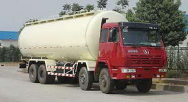 | 專用性能: | 粉粒物料運輸車利用本車動力驅動空氣壓縮機, 將壓縮空氣經管道送入密封罐體下部的氣室,使氣室液態化床上的粉粒體懸浮成流態狀,當罐內壓力達到額定值時,打開卸料閥,流動化物料通過管道流動而進行輸送。 粉粒物料運輸車罐體主要由筒體、罐體上端給進料口、流態化床、出料管總成、進氣管及其它附件組成。前、后氣室各設一根進氣管,通過球閥可分別實現同時開啟和單獨控制的功能。 | ||