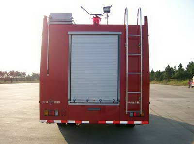 罐體總容積為4.885立方米,水罐容積:4.0立方米,水罐尺寸:446×1334×1488mm, 泡沫液罐容積:1.0立方米,泡沫罐尺寸:2015×1334×1488mm,采用6HK1-TC型發動機,10.00R20-16PR,10.00-20-16PR,11.00-20-18PR型輪胎, 后伸:195mm