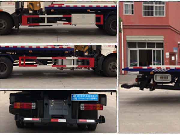 | 整車備注: | 該車用途為道路清障;主要裝置為托臂,托舉質量(kg):555;防護材料:Q235A碳鋼,連接方式:左右側面采用焊接接連接,后部防護由專用裝置(托臂)代替,故后防護豁免,后部專用裝置離地高為450mm.ABS系統生產廠家:長春科密汽車制動有限公司,型號:CM4XL.吊機型號:SQS030. | ||