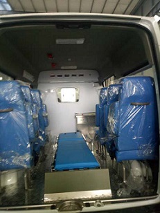 | 整車備注: | 該車配備醫療器械柜,擔架,氧氣瓶,消毒燈等救護專用設備。選裝內部照片,選裝后部踏板,車頂后尾翼,前頂凸臺。專用裝置:內置擔架一副。ABS系統控制器型號:EV5051,生產廠:博世汽車部件(蘇州)有限公司。選裝異性頂部結構時的高度為mm:2460。選裝換氣扇,車頂四周選裝單個或多個爆閃燈,前面警燈帶凸臺,選裝側拉門踏板。 | ||